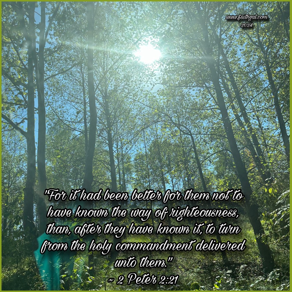 “For it had been better for them not to have known the way of righteousness, than, after they have known it, to turn from the holy commandment delivered unto them.” ~ 2 Peter 2:21