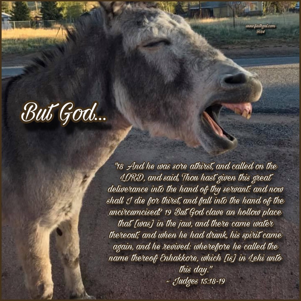 “18 And he was sore athirst, and called on the LORD, and said, Thou hast given this great deliverance into the hand of thy servant: and now shall I die for thirst, and fall into the hand of the uncircumcised? 19 But God clave an hollow place that [was] in the jaw, and there came water thereout; and when he had drunk, his spirit came again, and he revived: wherefore he called the name thereof Enhakkore, which [is] in Lehi unto this day.” ~ Judges 15:18-19
