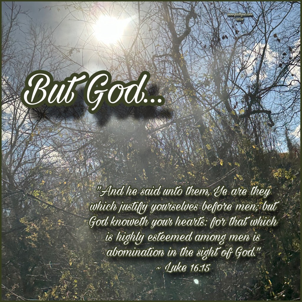 βAnd he said unto them, Ye are they which justify yourselves before men; but God knoweth your hearts: for that which is highly esteemed among men is abomination in the sight of God.β ~ Like 16:15