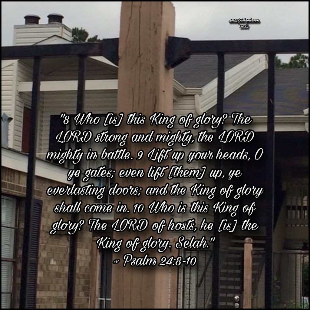 “8 Who [is] this King of glory? The LORD strong and mighty, the LORD mighty in battle. 9 Lift up your heads, O ye gates; even lift [them] up, ye everlasting doors; and the King of glory shall come in. 10 Who is this King of glory? The LORD of hosts, he [is] the King of glory. Selah.” ~ Psalm 24:8-10