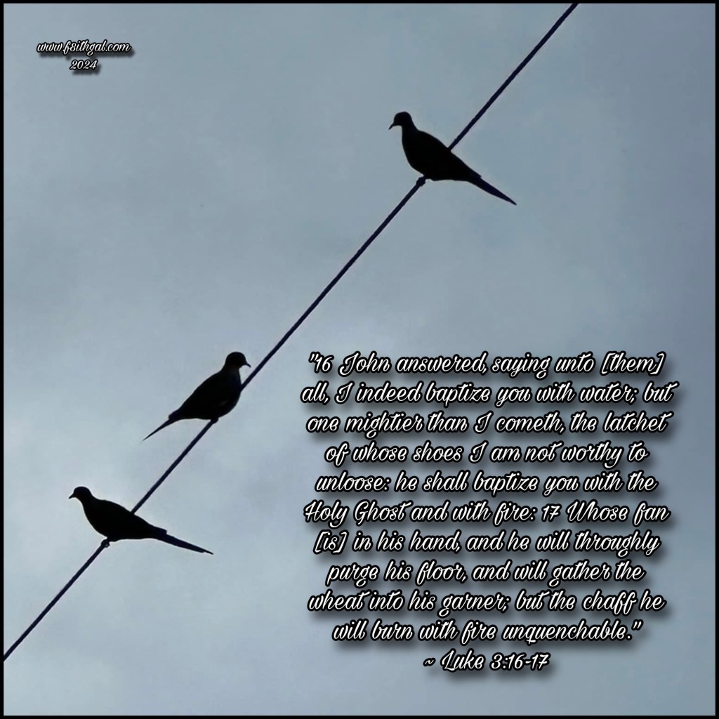 1 Now in the fifteenth year of the reign of Tiberius Caesar, Pontius Pilate being governor of Judaea, and Herod being tetrarch of Galilee, and his brother Philip tetrarch of Ituraea and of the region of Trachonitis, and Lysanias the tetrarch of Abilene, 2 Annas and Caiaphas being the high priests, the word of God came unto John the son of Zacharias in the wilderness. 3 And he came into all the country about Jordan, preaching the baptism of repentance for the remission of sins; 4 As it is written in the book of the words of Esaias the prophet, saying, The voice of one crying in the wilderness, Prepare ye the way of the Lord, make his paths straight. 5 Every valley shall be filled, and every mountain and hill shall be brought low; and the crooked shall be made straight, and the rough ways [shall be] made smooth; 6 And all flesh shall see the salvation of God. 7 Then said he to the multitude that came forth to be baptized of him, O generation of vipers, who hath warned you to flee from the wrath to come? 8 Bring forth therefore fruits worthy of repentance, and begin not to say within yourselves, We have Abraham to [our] father: for I say unto you, That God is able of these stones to raise up children unto Abraham. 9 And now also the axe is laid unto the root of the trees: every tree therefore which bringeth not forth good fruit is hewn down, and cast into the fire. 10 And the people asked him, saying, What shall we do then? 11 He answereth and saith unto them, He that hath two coats, let him impart to him that hath none; and he that hath meat, let him do likewise. 12 Then came also publicans to be baptized, and said unto him, Master, what shall we do? 13 And he said unto them, Exact no more than that which is appointed you. 14 And the soldiers likewise demanded of him, saying, And what shall we do? And he said unto them, Do violence to no man, neither accuse [any] falsely; and be content with your wages. 15 And as the people were in expectation, and all men mused in their hearts of John, whether he were the Christ, or not; 16 John answered, saying unto [them] all, I indeed baptize you with water; but one mightier than I cometh, the latchet of whose shoes I am not worthy to unloose: he shall baptize you with the Holy Ghost and with fire: 17 Whose fan [is] in his hand, and he will throughly purge his floor, and will gather the wheat into his garner; but the chaff he will burn with fire unquenchable. 18 And many other things in his exhortation preached he unto the people. 19 But Herod the tetrarch, being reproved by him for Herodias his brother Philip’s wife, and for all the evils which Herod had done, 20 Added yet this above all, that he shut up John in prison. 21 Now when all the people were baptized, it came to pass, that Jesus also being baptized, and praying, the heaven was opened, 22 And the Holy Ghost descended in a bodily shape like a dove upon him, and a voice came from heaven, which said, Thou art my beloved Son; in thee I am well pleased. 23 And Jesus himself began to be about thirty years of age, being (as was supposed) the son of Joseph, which was [the son] of Heli, 24 Which was [the son] of Matthat, which was [the son] of Levi, which was [the son] of Melchi, which was [the son] of Janna, which was [the son] of Joseph, 25 Which was [the son] of Mattathias, which was [the son] of Amos, which was [the son] of Naum, which was [the son] of Esli, which was [the son] of Nagge, 26 Which was [the son] of Maath, which was [the son] of Mattathias, which was [the son] of Semei, which was [the son] of Joseph, which was [the son] of Juda, 27 Which was [the son] of Joanna, which was [the son] of Rhesa, which was [the son] of Zorobabel, which was [the son] of Salathiel, which was [the son] of Neri, 28 Which was [the son] of Melchi, which was [the son] of Addi, which was [the son] of Cosam, which was [the son] of Elmodam, which was [the son] of Er, 29 Which was [the son] of Jose, which was [the son] of Eliezer, which was [the son] of Jorim, which was [the son] of Matthat, which was [the son] of Levi, 30 Which was [the son] of Simeon, which was [the son] of Juda, which was [the son] of Joseph, which was [the son] of Jonan, which was [the son] of Eliakim, 31 Which was [the son] of Melea, which was [the son] of Menan, which was [the son] of Mattatha, which was [the son] of Nathan, which was [the son] of David, 32 Which was [the son] of Jesse, which was [the son] of Obed, which was [the son] of Booz, which was [the son] of Salmon, which was [the son] of Naasson, 33 Which was [the son] of Aminadab, which was [the son] of Aram, which was [the son] of Esrom, which was [the son] of Phares, which was [the son] of Juda, 34 Which was [the son] of Jacob, which was [the son] of Isaac, which was [the son] of Abraham, which was [the son] of Thara, which was [the son] of Nachor, 35 Which was [the son] of Saruch, which was [the son] of Ragau, which was [the son] of Phalec, which was [the son] of Heber, which was [the son] of Sala, 36 Which was [the son] of Cainan, which was [the son] of Arphaxad, which was [the son] of Sem, which was [the son] of Noe, which was [the son] of Lamech, 37 Which was [the son] of Mathusala, which was [the son] of Enoch, which was [the son] of Jared, which was [the son] of Maleleel, which was [the son] of Cainan, 38 Which was [the son] of Enos, which was [the son] of Seth, which was [the son] of Adam, which was [the son] of God.