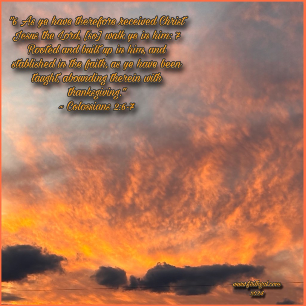 β6 As ye have therefore received Christ Jesus the Lord, [so] walk ye in him: 7 Rooted and built up in him, and stablished in the faith, as ye have been taught, abounding therein with thanksgiving.β ~ Colossians 2:6-7