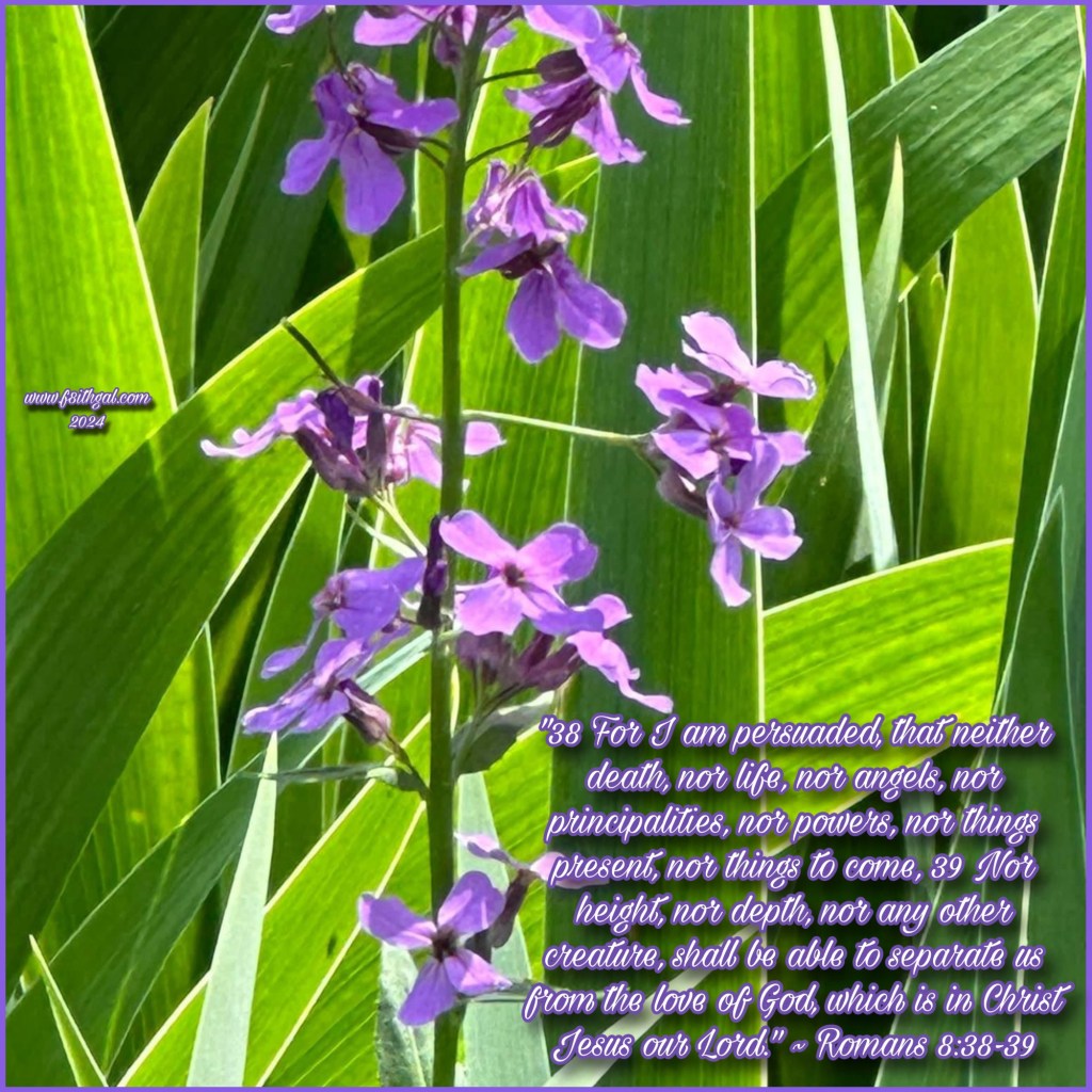 [Romans 8:19-39 KJV] 19 For the earnest expectation of the creature waiteth for the manifestation of the sons of God. 20 For the creature was made subject to vanity, not willingly, but by reason of him who hath subjected [the same] in hope, 21 Because the creature itself also shall be delivered from the bondage of corruption into the glorious liberty of the children of God. 22 For we know that the whole creation groaneth and travaileth in pain together until now. 23 And not only [they], but ourselves also, which have the firstfruits of the Spirit, even we ourselves groan within ourselves, waiting for the adoption, [to wit], the redemption of our body. 24 For we are saved by hope: but hope that is seen is not hope: for what a man seeth, why doth he yet hope for? 25 But if we hope for that we see not, [then] do we with patience wait for [it]. 26 Likewise the Spirit also helpeth our infirmities: for we know not what we should pray for as we ought: but the Spirit itself maketh intercession for us with groanings which cannot be uttered. 27 And he that searcheth the hearts knoweth what [is] the mind of the Spirit, because he maketh intercession for the saints according to [the will of] God. 28 And we know that all things work together for good to them that love God, to them who are the called according to [his] purpose. 29 For whom he did foreknow, he also did predestinate [to be] conformed to the image of his Son, that he might be the firstborn among many brethren. 30 Moreover whom he did predestinate, them he also called: and whom he called, them he also justified: and whom he justified, them he also glorified. 31 What shall we then say to these things? If God [be] for us, who [can be] against us? 32 He that spared not his own Son, but delivered him up for us all, how shall he not with him also freely give us all things? 33 Who shall lay any thing to the charge of God’s elect? [It is] God that justifieth. 34 Who [is] he that condemneth? [It is] Christ that died, yea rather, that is risen again, who is even at the right hand of God, who also maketh intercession for us. 35 Who shall separate us from the love of Christ? [shall] tribulation, or distress, or persecution, or famine, or nakedness, or peril, or sword? 36 As it is written, For thy sake we are killed all the day long; we are accounted as sheep for the slaughter. 37 Nay, in all these things we are more than conquerors through him that loved us. 38 For I am persuaded, that neither death, nor life, nor angels, nor principalities, nor powers, nor things present, nor things to come, 39 Nor height, nor depth, nor any other creature, shall be able to separate us from the love of God, which is in Christ Jesus our Lord.