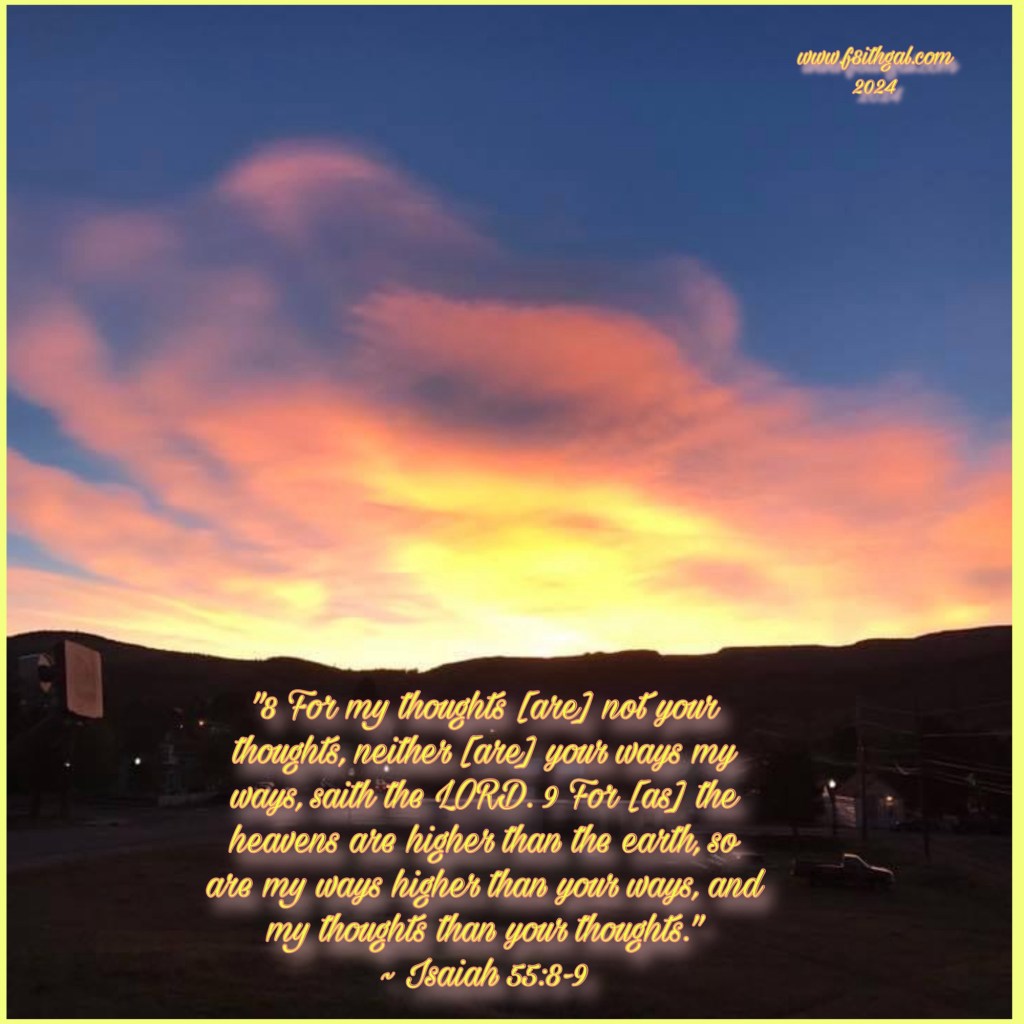 “8 For my thoughts [are] not your thoughts, neither [are] your ways my ways, saith the LORD. 9 For [as] the heavens are higher than the earth, so are my ways higher than your ways, and my thoughts than your thoughts.” ~ Isaiah 55:8-9