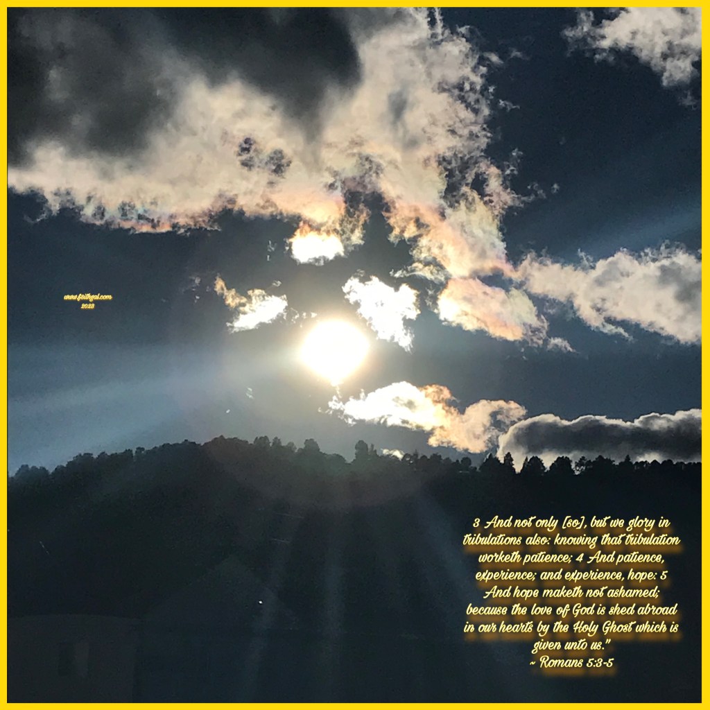 My morning devotional could not have been more perfect for me, God always knows what our heart needs. It led me to today’s passage. I have felt the weight of the world on my shoulders for weeks and I have been going through a treacherous storm that seemed to stamp out the light. Not so daughter, My light shines from within in you and your strength comes directly from Me. Know you not that I AM the source and you are connected directly to the vine? I am that vine daughter. You see friends, I was seeing the weight of my affliction as overbearing and too hard to carry, but God calls it light. It is light when we give that affliction to God to carry and work through on our behalf. Our job through this is a faith that is stronger than the winds coming against us. I am not to look at what my physical eyes are seeing, but look with my spiritual eyes at the unseen. Faith my child, these are faith building times. Every thing you go through is to strengthen your faith AND your relationship with me. Faith building times, dig into Me and watch any uncertainty wash away. I have dispatched warring angels to fight on your behalf. You only need to believe. I believe Father!! Watch for the testimony to come from these afflictions friends. 🦅 ~ Chelle, #f8ithgal
