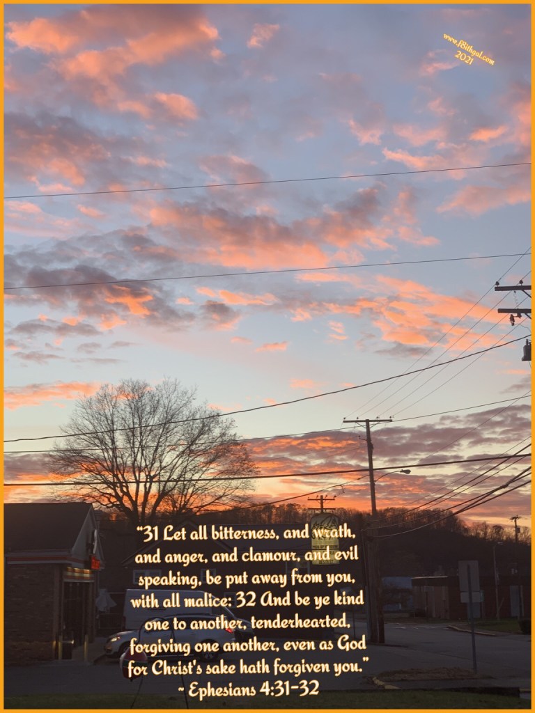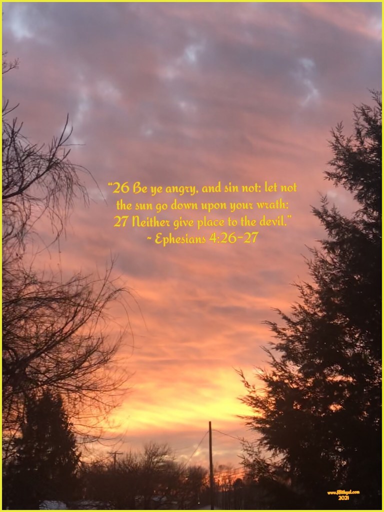 “26 Be ye angry, and sin not: let not the sun go down upon your wrath: 27 Neither give place to the devil.” ~ Ephesians 4:26-27