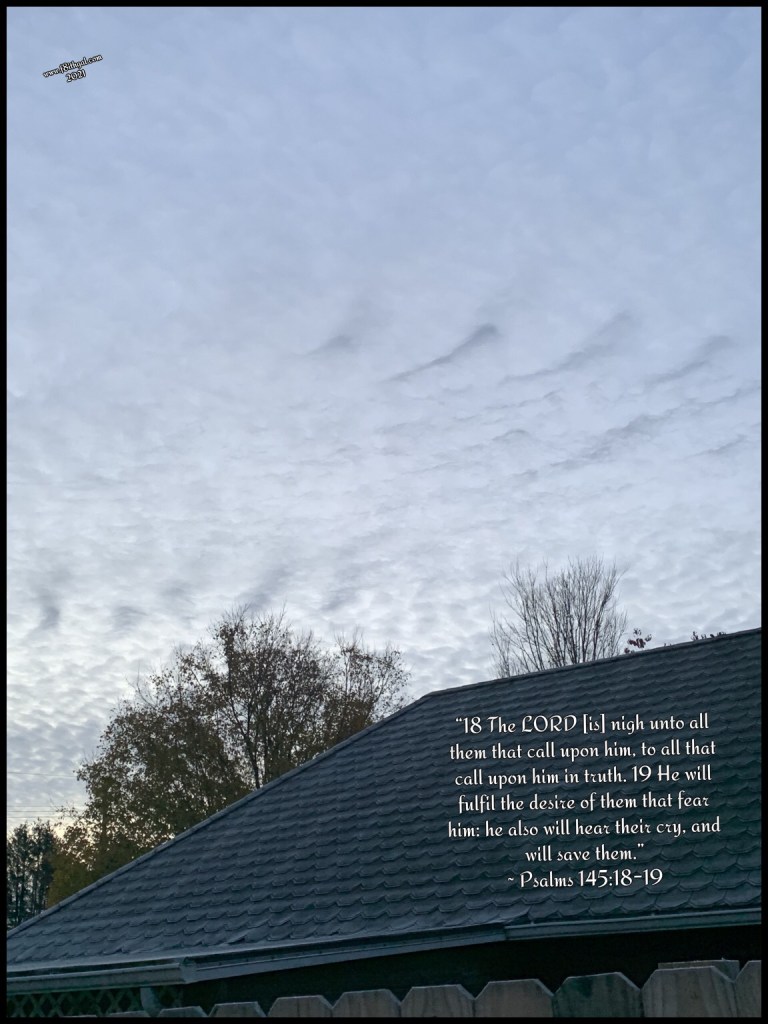 “18 The LORD [is] nigh unto all them that call upon him, to all that call upon him in truth. 19 He will fulfil the desire of them that fear him: he also will hear their cry, and will save them.” ~ Psalms 145:18-19