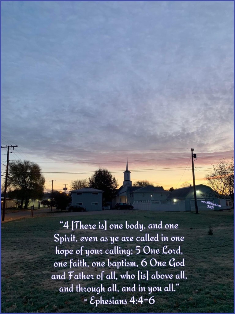 “4 [There is] one body, and one Spirit, even as ye are called in one hope of your calling; 5 One Lord, one faith, one baptism, 6 One God and Father of all, who [is] above all, and through all, and in you all.” ~ Ephesians 4:4-6