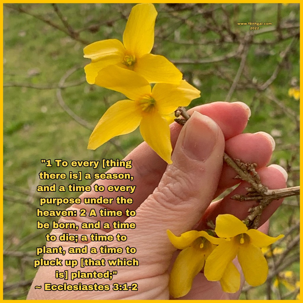 “To every thing there is a season, and a time to every purpose under the heaven:” ~ Ecclesiastes 3:1