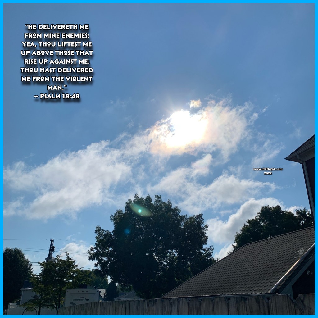 “He delivereth me from mine enemies: yea, thou liftest me up above those that rise up against me: thou hast delivered me from the violent man.” ~ Psalm 18:48