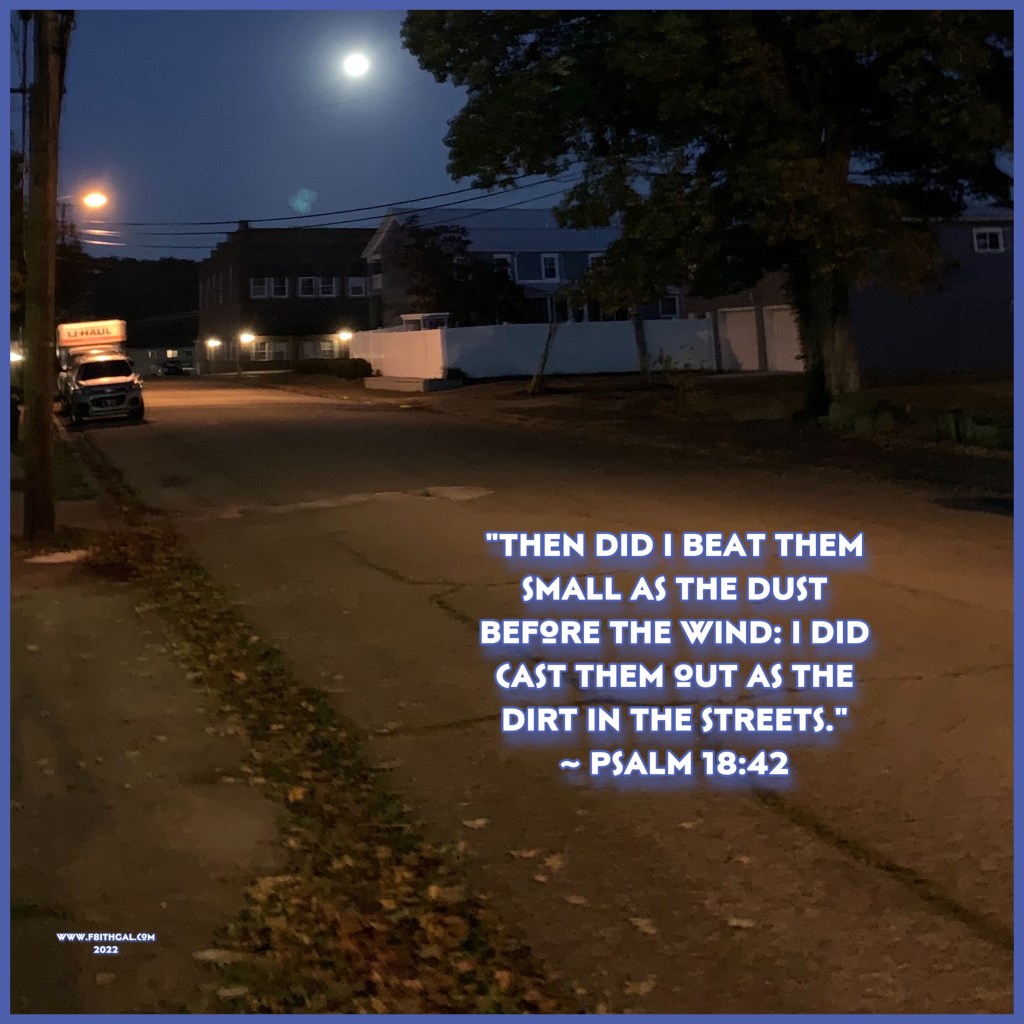 “Then did I beat them small as the dust before the wind: I did cast them out as the dirt in the streets.” ~ Psalm 18:42