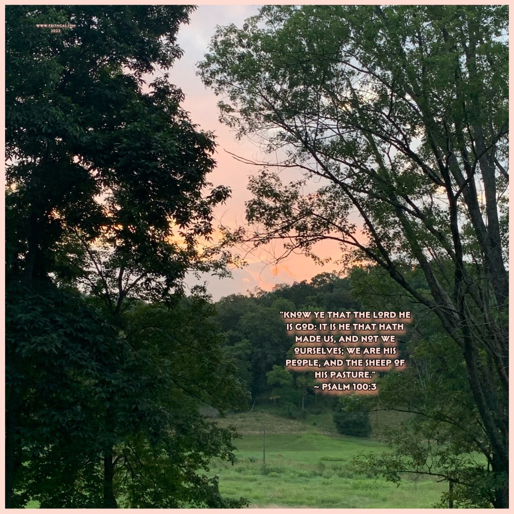 “Know ye that the Lord he is God: it is he that hath made us, and not we ourselves; we are his people, and the sheep of his pasture.” ~ Psalm 100:3