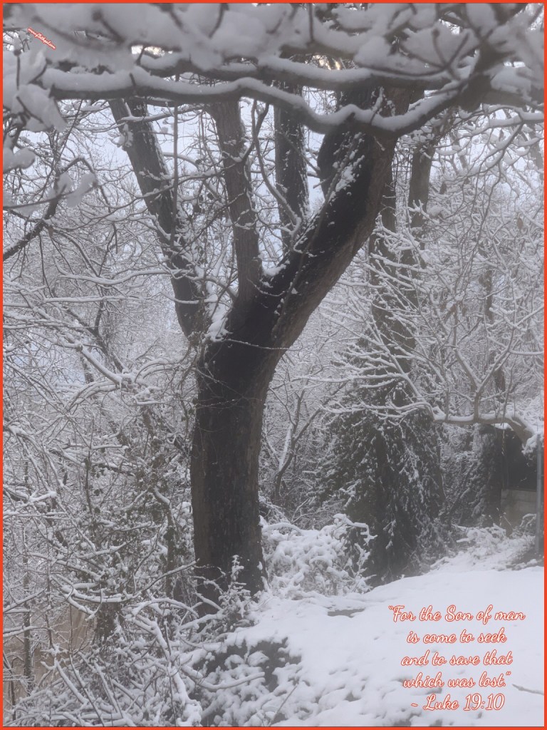 I love the story of Zaccaharus. He climbed up in a tree to see Jesus as passed that way. Could you imagine his surprise when Jesus told him to climb down (and in haste) that he had to abide in his home? Ohhhh and then to be told salvation had come to your home that day?! Verse 10 says it clearly, “For the Son of man is come to seek and to save that which was lost.” Thank You Jesus for seeking me out and saving my soul!