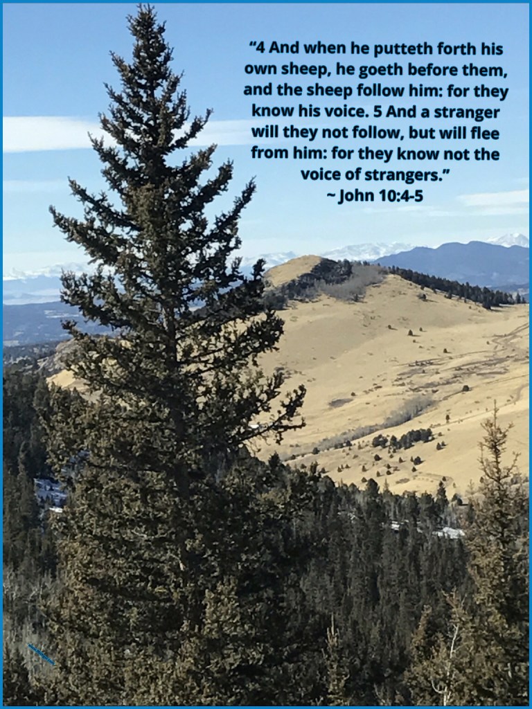 “4 And when he putteth forth his own sheep, he goeth before them, and the sheep follow him: for they know his voice. 5 And a stranger will they not follow, but will flee from him: for they know not the voice of strangers.” ~ John 10:4-5