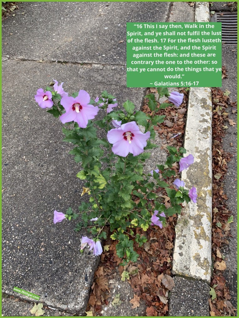 “16 [This] I say then, Walk in the Spirit, and ye shall not fulfil the lust of the flesh. 17 For the flesh lusteth against the Spirit, and the Spirit against the flesh: and these are contrary the one to the other: so that ye cannot do the things that ye would.” ~ Galatians 5:16-17