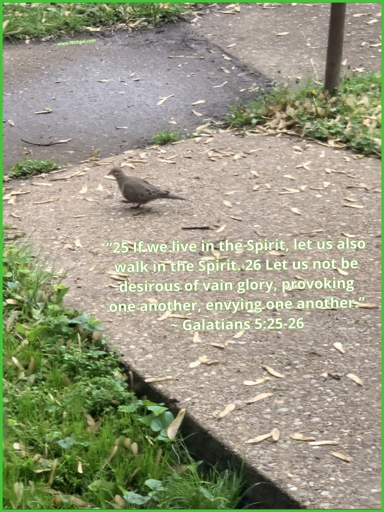 “25 If we live in the Spirit, let us also walk in the Spirit. 26 Let us not be desirous of vain glory, provoking one another, envying one another.” ~ Galatians 5:25-26