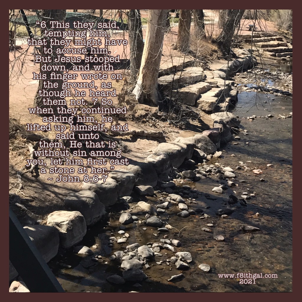 “So when they continued asking him, he lifted up himself, and said unto them, He that is without sin among you, let him first cast a stone at her.” ~ John 8:7