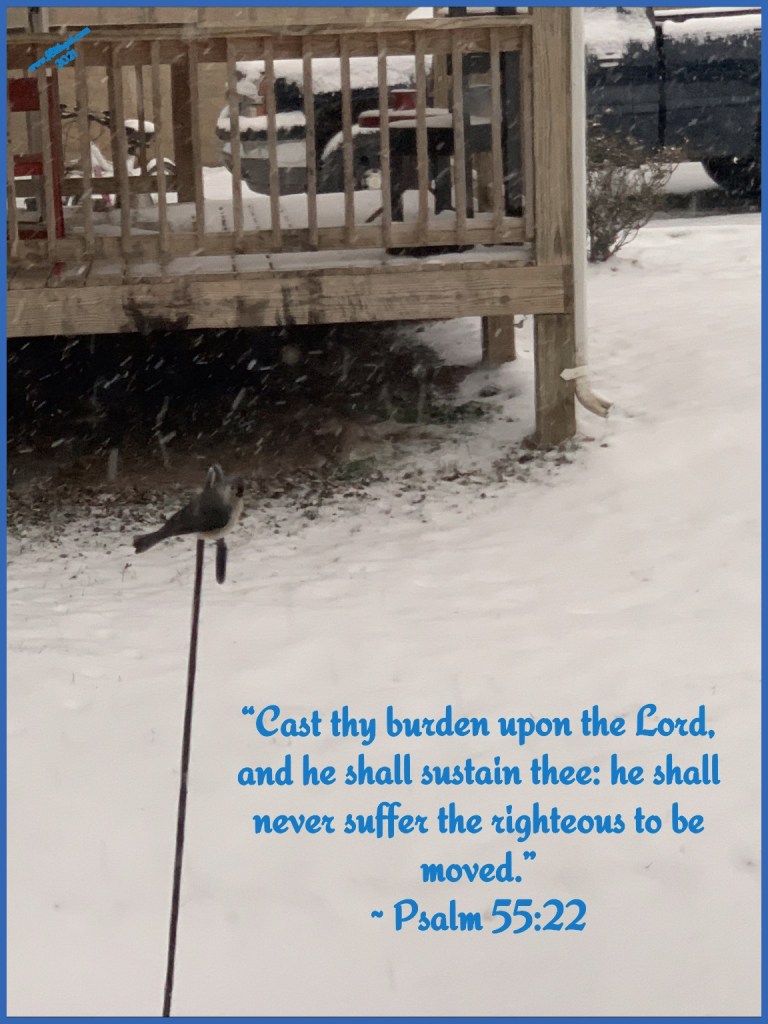 “Cast thy burden upon the LORD, and he shall sustain thee: he shall never suffer the righteous to be moved.” ~ Psalm 55:22