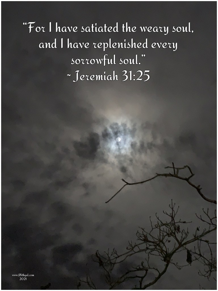 My momma came in the kitchen this evening to find me in complete tears, “I’ll do it she said, your face is even blotchy.” “No, sometimes you just need to talk to your Poppa I exclaimed.” She left and “Even When it Hurts” by Hillsong United came on my playlist. I began to pray in my prayer language with tears streaming until I could not even stir the hamburger any longer and I heard my Poppa say, I see you daughter, I see you. I felt such a peace wash over me. Something broke in the atmosphere. This verse reminds of that.