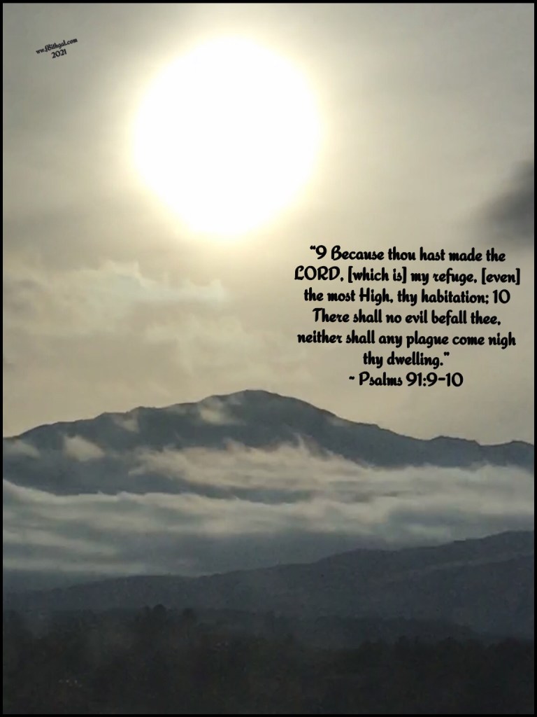 “9 Because thou hast made the LORD, [which is] my refuge, [even] the most High, thy habitation; 10 There shall no evil befall thee, neither shall any plague come nigh thy dwelling.” ~ Psalms 91:9-10