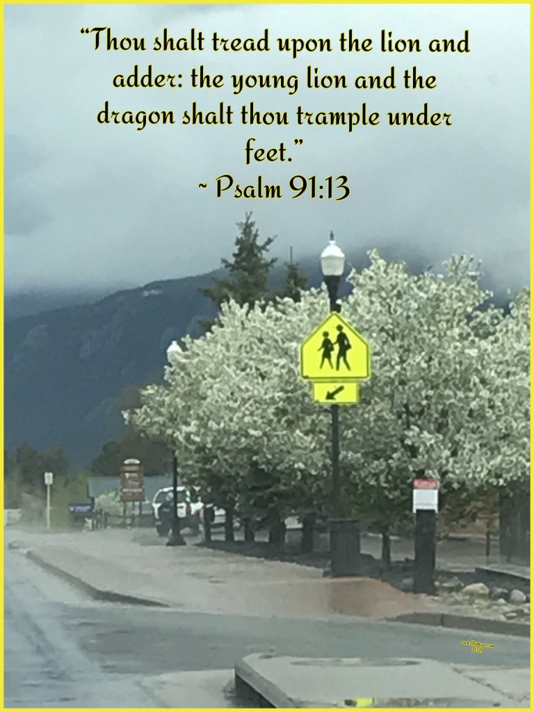 “Thou shalt tread upon the lion and adder: the young lion and the dragon shalt thou trample under feet.” ~ Psalm 91:13