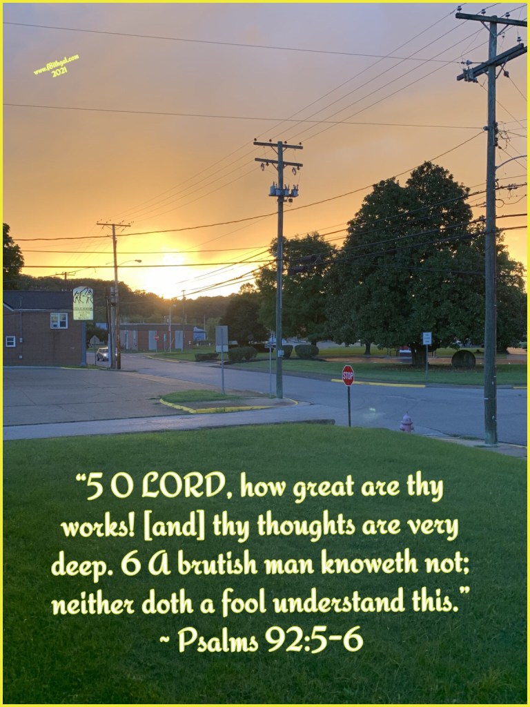 “5 O LORD, how great are thy works! [and] thy thoughts are very deep. 6 A brutish man knoweth not; neither doth a fool understand this.” ~ Psalms 92:5-6