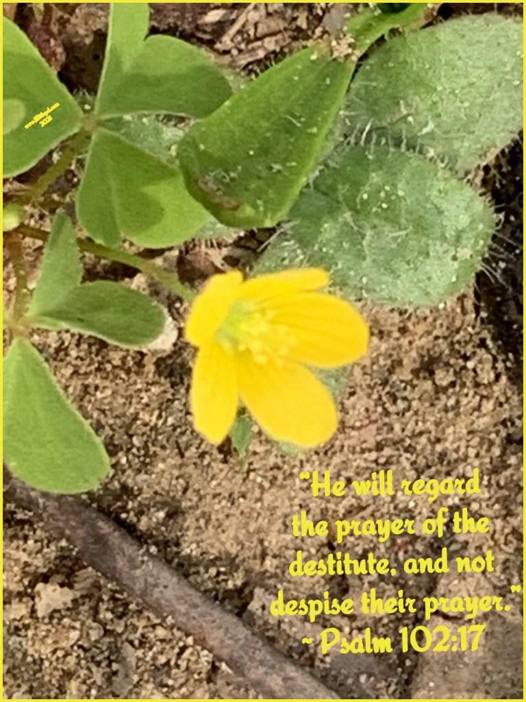 “He will regard the prayer of the destitute, and not despise their prayer.” ~ Psalm 102:17