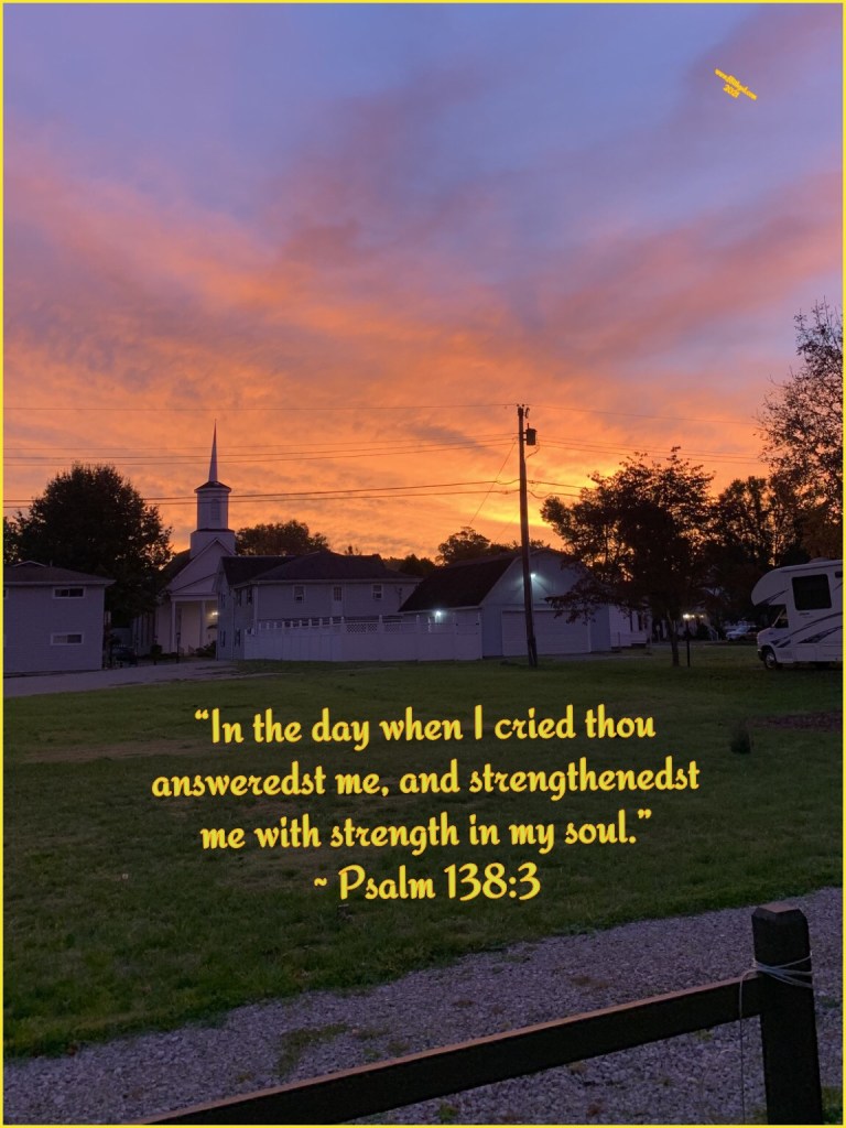 “In the day when I cried thou answeredst me, and strengthenedst me with strength in my soul.” ~ Psalm 138:3