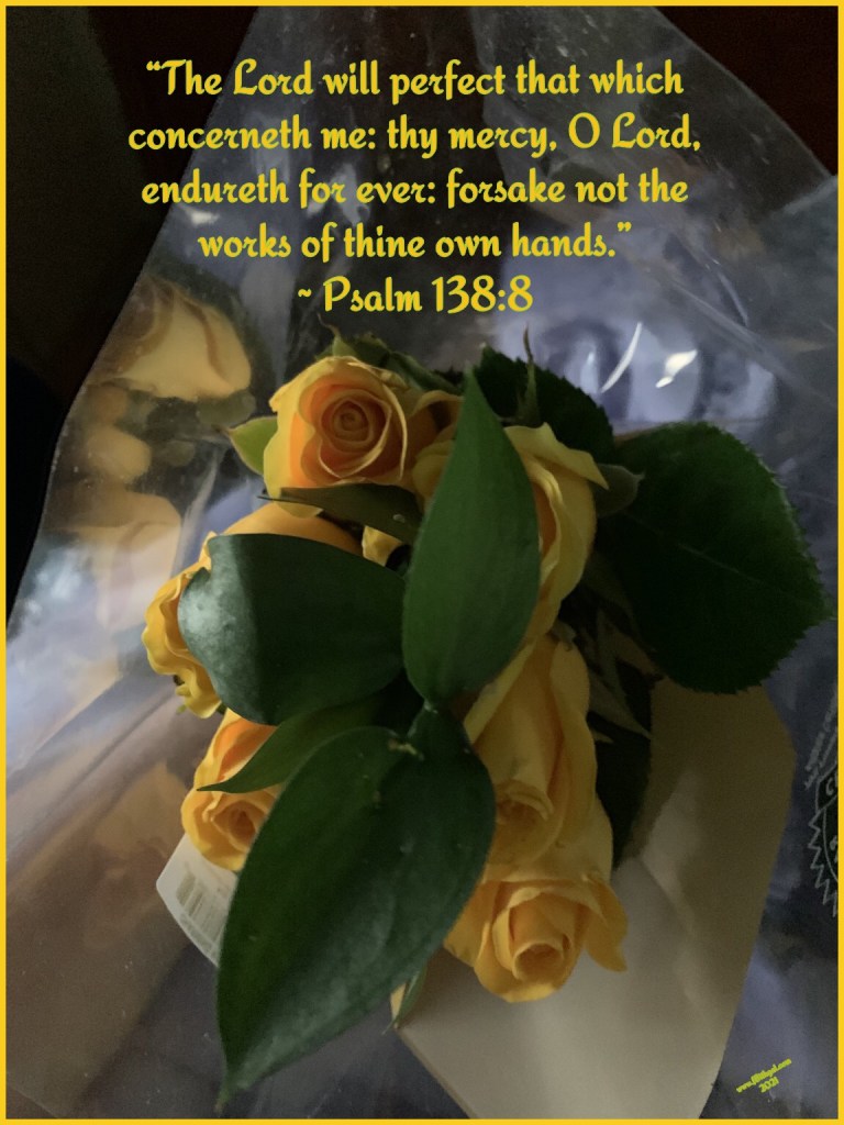 “The Lord will perfect that which concerneth me: thy mercy, O Lord, endureth for ever: forsake not the works of thine own hands.” ~ Psalm 138:8
