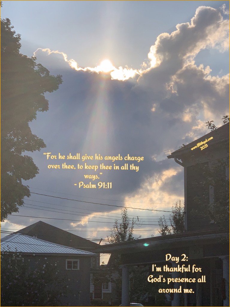 For day 2, I am thankful for God’s presence all around me. Did you know He even has angels watching over you? My momma has prayed angels around me ever since I can remember. Our Father loves to commune with us. I love to just sit in His presence and listen to His heart. I also love walks alone where I can talk to Him. There is no more peaceful place to be than the center of my Poppa’s presence. 💛 ~ Chelle, #f8ithgal