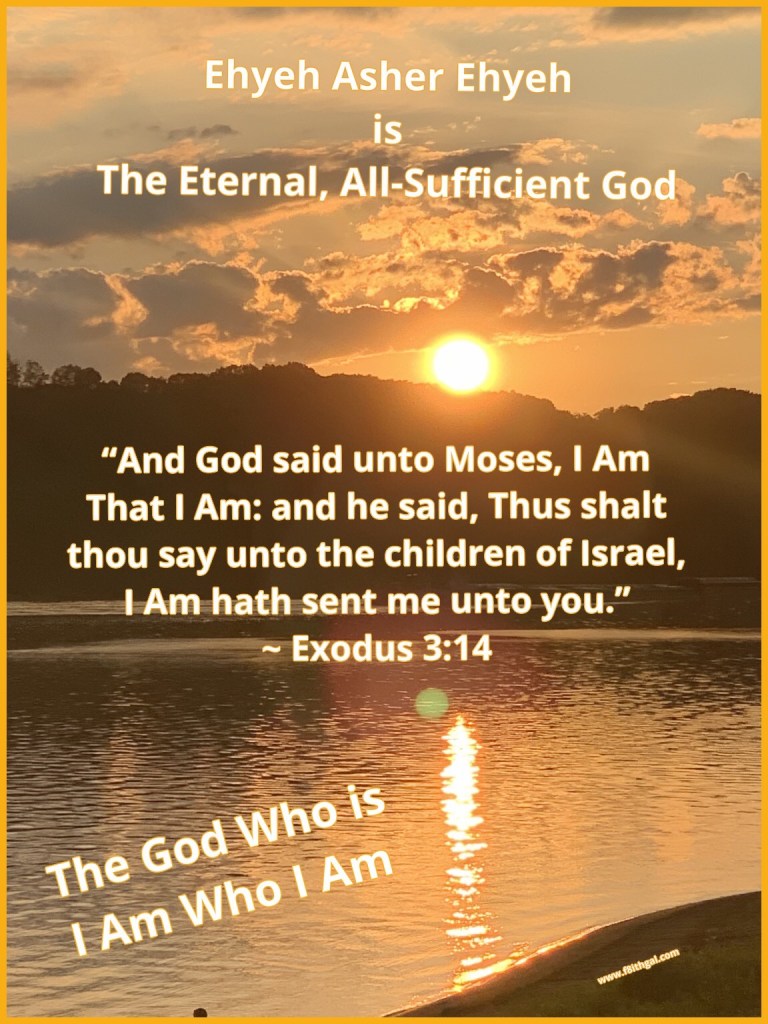 Ehyeh Asher Ehyeh is The Eternal, All Sufficient God. He is the God who is I Am Who I Am. Today was one of those days where I felt like I couldn’t do anything right. My imperfections were glaring at me. Now it is after 8 in the evening and I’m just finally sitting down to read and write and I open up to Ehyeh Asher Ehyeh. Once again my heart smiles. I don’t have to have it all together at all times, I’m a work in progress. I don’t always have to have all the answers. I don’t even have to worry about having the right resources. Why? Because I serve a God that already has all the answers. He has all the resources I need. He directs and guides my path. The Holy Spirit imparts wisdom. He is I Am. He has all I could ever need. Oh daughter why do you worry so, why do you push yourself so hard? Lean into Me! Perhaps someone else needs that reminder tonight. We serve Ehyeh Asher Ehyeh. He is I Am and He is all that we need. 💛 ~ Chelle, #f8ithgal