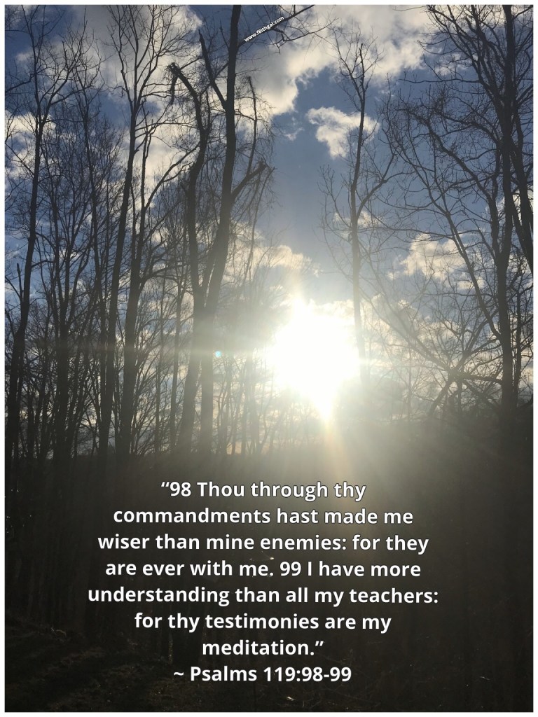 “98 Thou through thy commandments hast made me wiser than mine enemies: for they [are] ever with me. 99 I have more understanding than all my teachers: for thy testimonies [are] my meditation.” ~ Psalms 119:98-99