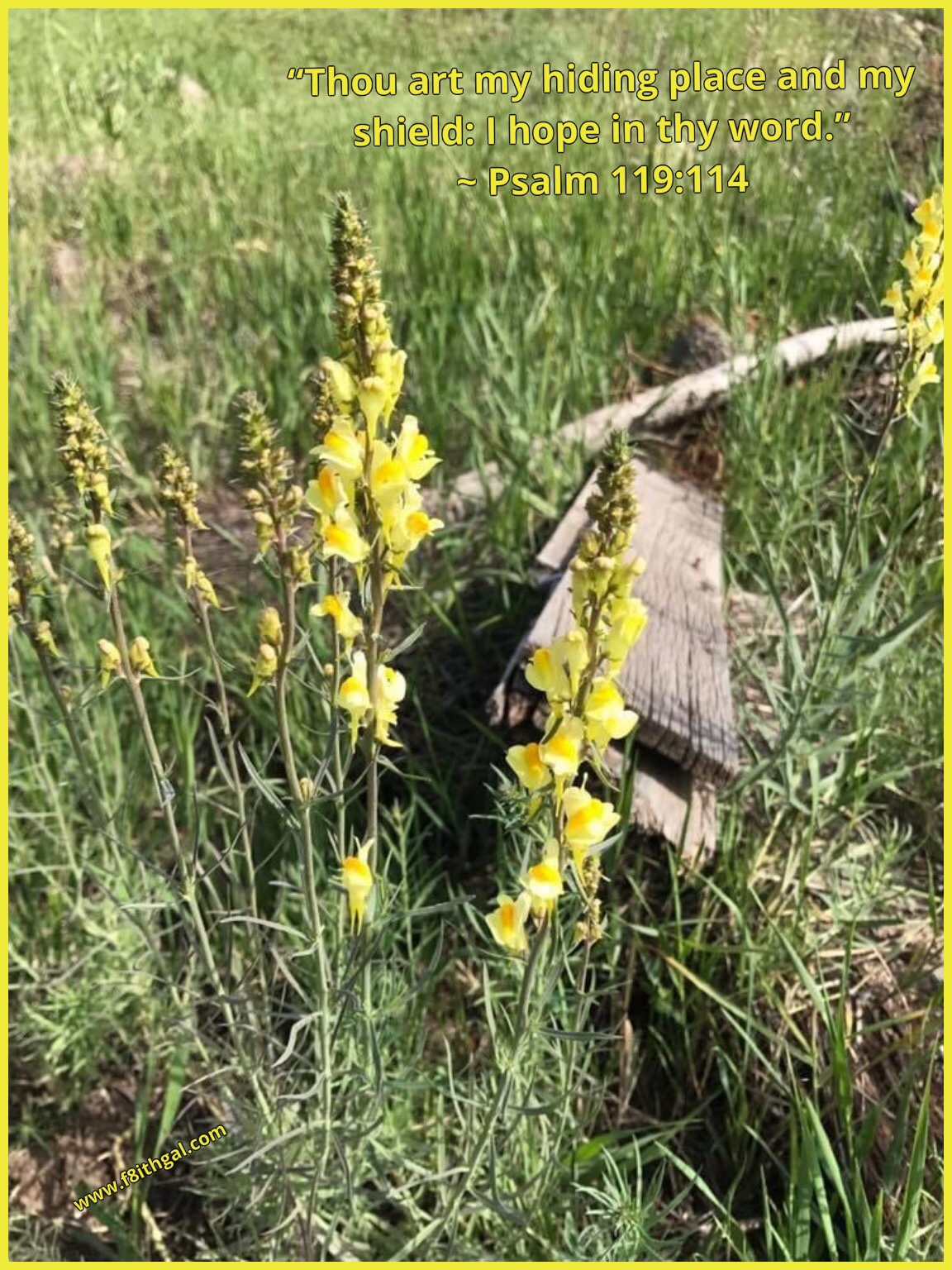 “Thou art my hiding place and my shield: I hope in thy word.” ~ Psalm 119:114