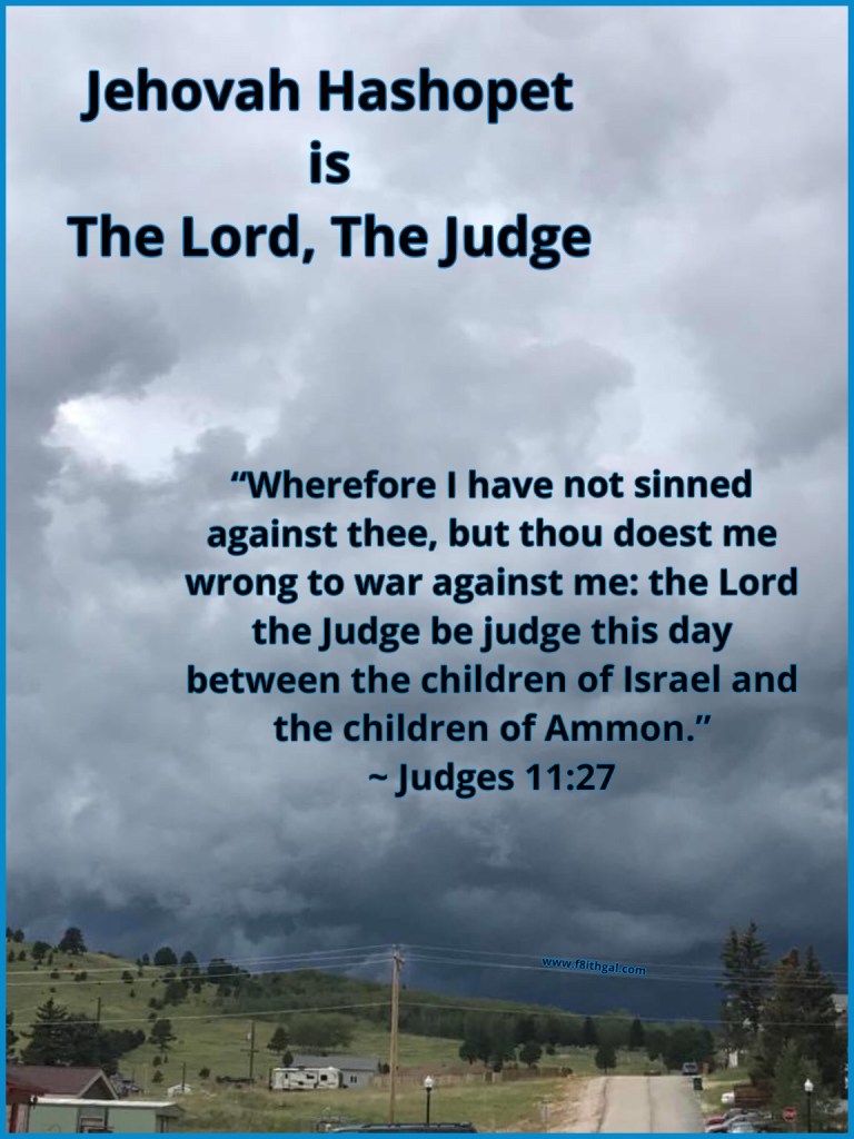 Jehovah Hashopet is The Lord, The Judge. I was meditating on this verse this evening. Many times in life we expend energy on battles that we don’t even need to fight. People like to talk and we feel compelled to defend our name, but Jehovah Hashopet is the ultimate judge and He sees what people don’t. He hears the conversations whispered in secret places and knows what is hidden. I believe He will bring to light what is hidden in the dark. His judgement is pure and right. This name of God also made me think of the judgement seat of Christ where the saved and unsaved will be judged. It made me want to cry out, “Are you ready?” 💛 ~ Chelle, #f8ithgal