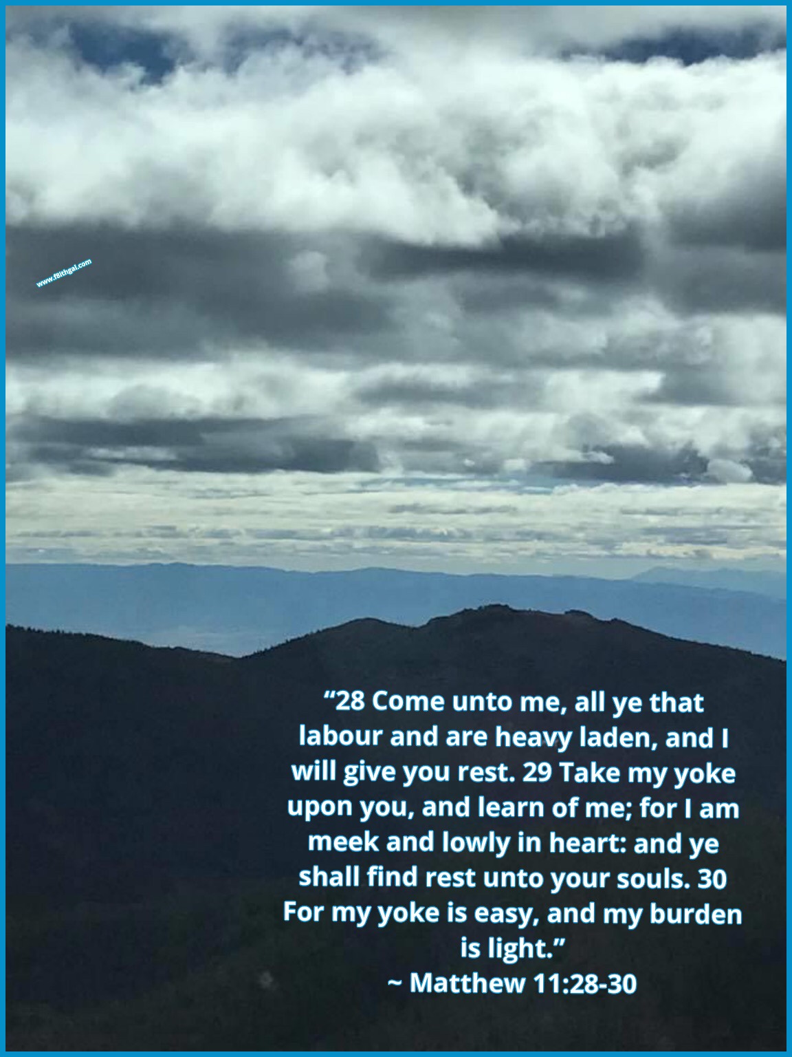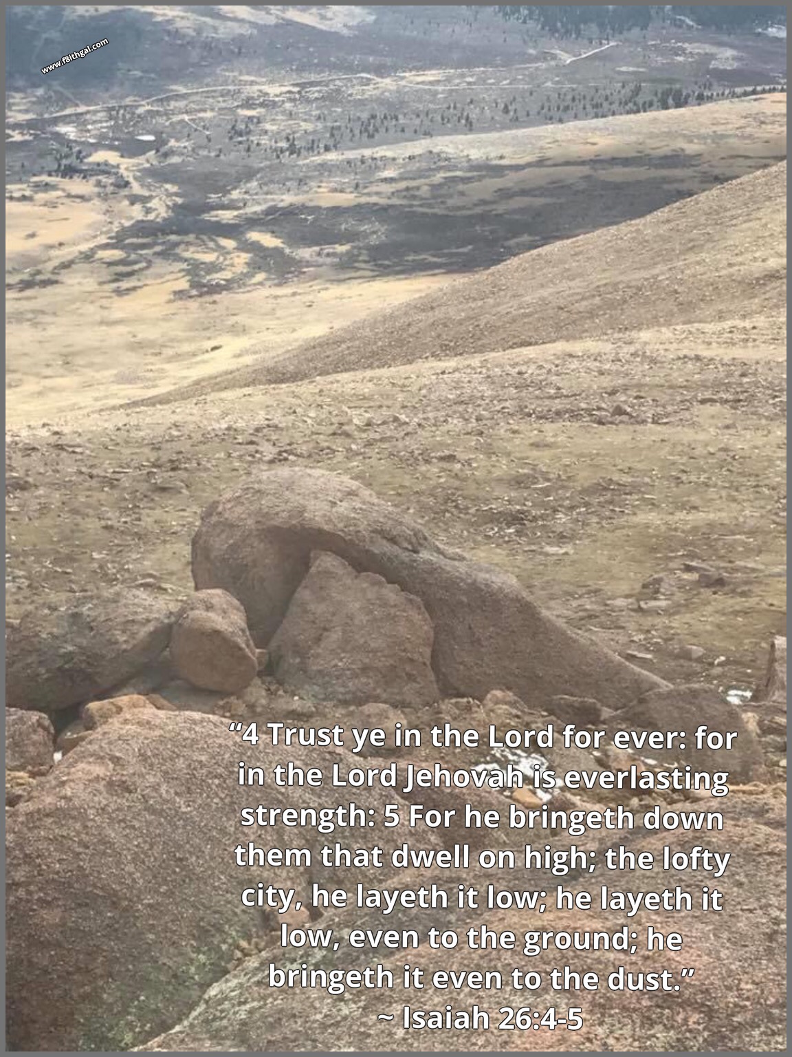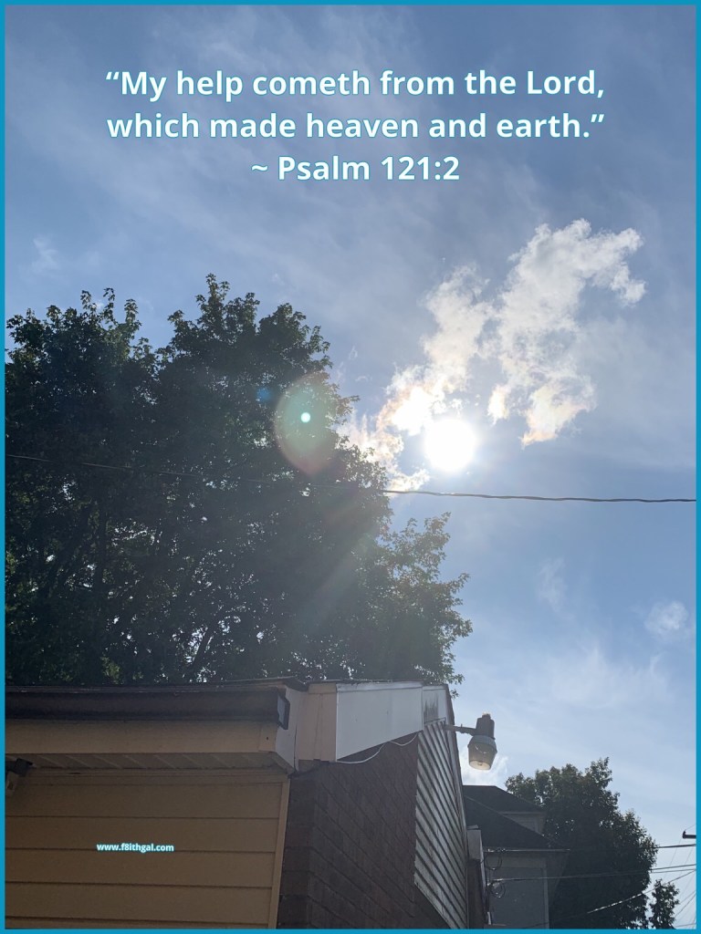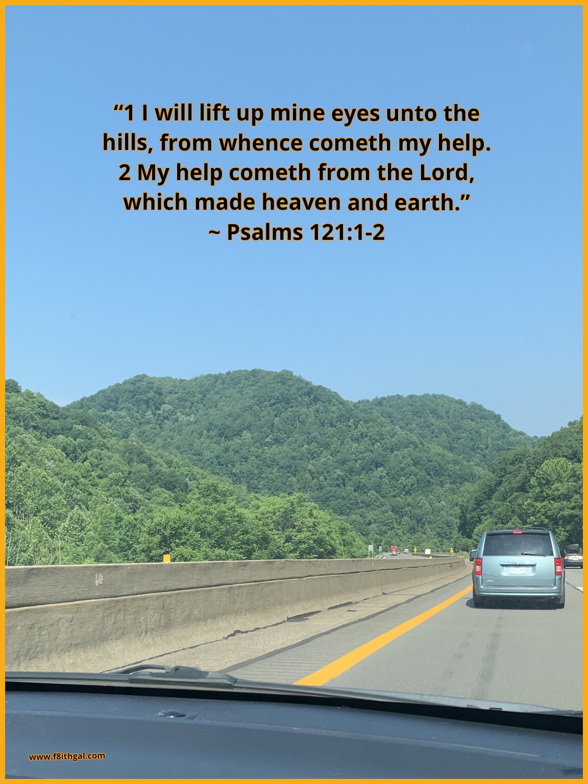 “1 I will lift up mine eyes unto the hills, from whence cometh my help. 2 My help [cometh] from the LORD, which made heaven and earth.” ~ Psalms 121:1-2
