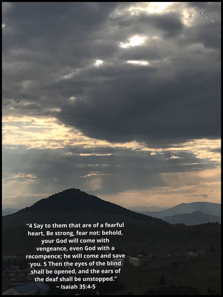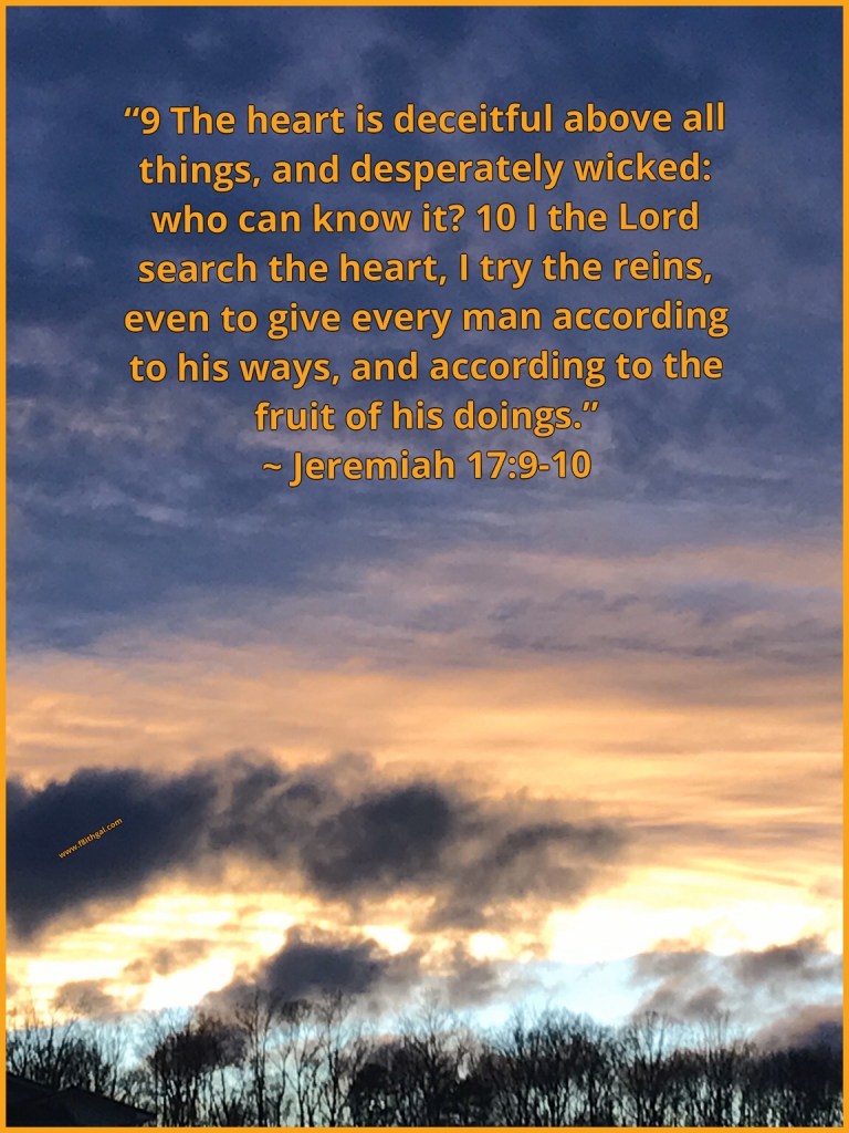 He spoke to my heart so clearly. They are spiritually blind. Their ears are stopped up. Pray for them daughter, pray. “But the natural man receiveth not the things of the Spirit of God: for they are foolishness unto him: neither can he know [them], because they are spiritually discerned.” 1 Corinthians 2:14 It grieved my heart to think of so many spiritually blind. If it grieved my heart, can you imagine how much more it grieves our Father’s heart? I’ve seen things from from “Christian” people that I know grieved the Holy Spirit. They were absolutely convinced they were right. There was a time I too would have jumped right in, but now I stop and pray and ask for the Holy Spirit to remove any blinders, unstop my ears, give me discernment. I don’t want to fall prey to the devil’s tricks again.