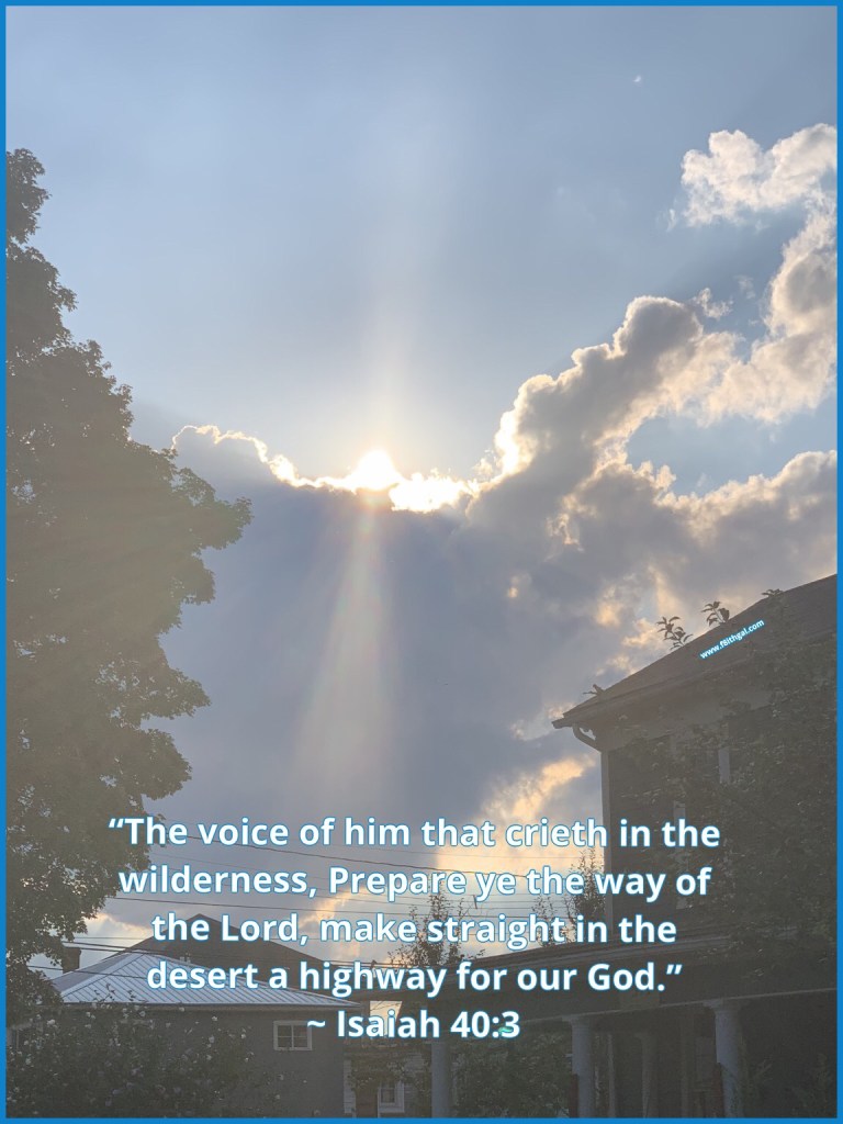 I listen to a song that says, “Prepare the way, prepare the way of the Lord.“ It brings back me to verses 4-6 every time I listen to it. Jesus is coming back again. It’s so important to tell as many people as we can now, to share the news of His love and salvation because the devil is so set on taking as many to hell as he can. Verse 9 tells us every tree which doesn’t produce good (Godly) fruit is cut down and cast into the fire. Salvation matters. It’s a heart thing. It the time to get right with God, time is fleeting. Prepare ye the way.