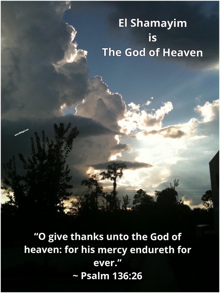Jehovah Elohim Ab is The Lord God of Your Forefathers. Yesterday on our car ride out of town we were watching the clouds. My niece ask us who created God. I said He has always been, He is the I Am, and has always been since the beginning of time. That is really something for a child to wrap their mind around.