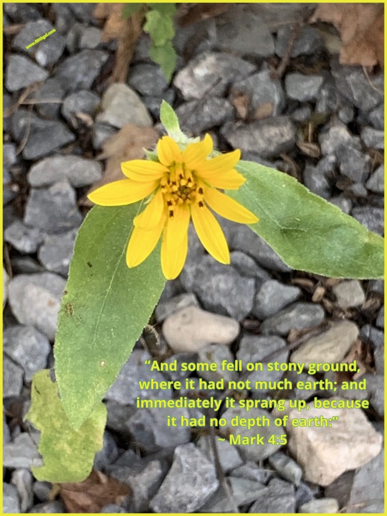 “And some fell on stony ground, where it had not much earth; and immediately it sprang up, because it had no depth of earth:” ~ Mark 4:5