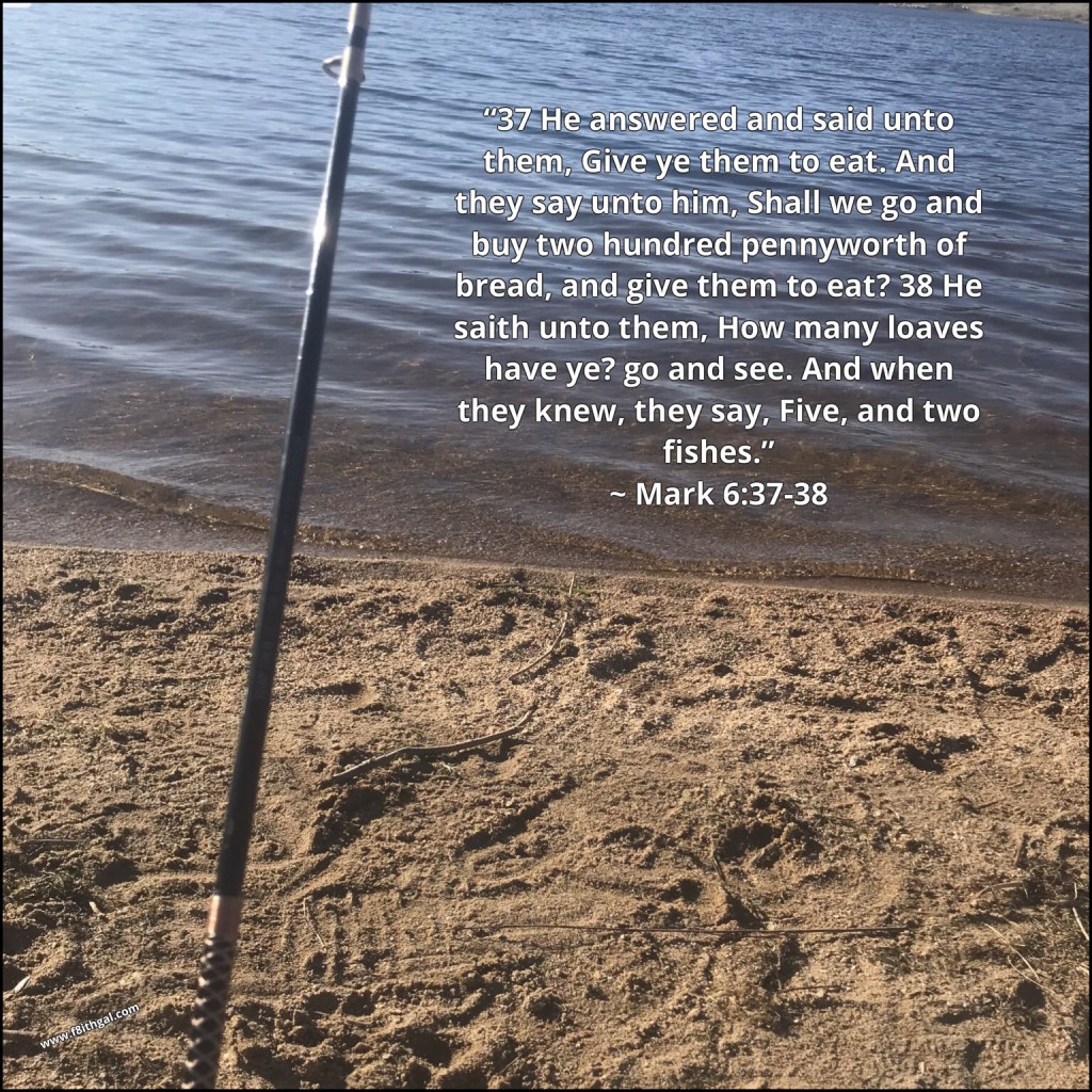 “37 He answered and said unto them, Give ye them to eat. And they say unto him, Shall we go and buy two hundred pennyworth of bread, and give them to eat? 38 He saith unto them, How many loaves have ye? go and see. And when they knew, they say, Five, and two fishes.” ~ Mark 6:37-38