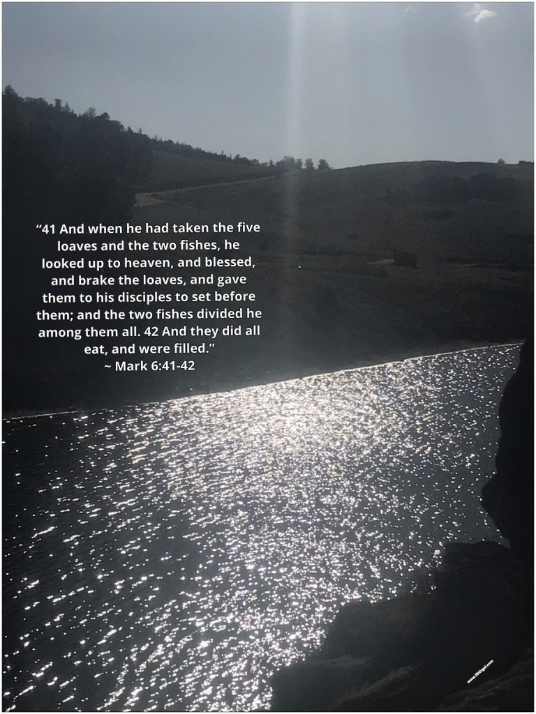 “41 And when he had taken the five loaves and the two fishes, he looked up to heaven, and blessed, and brake the loaves, and gave [them] to his disciples to set before them; and the two fishes divided he among them all. 42 And they did all eat, and were filled.” ~ Mark 6:41-42