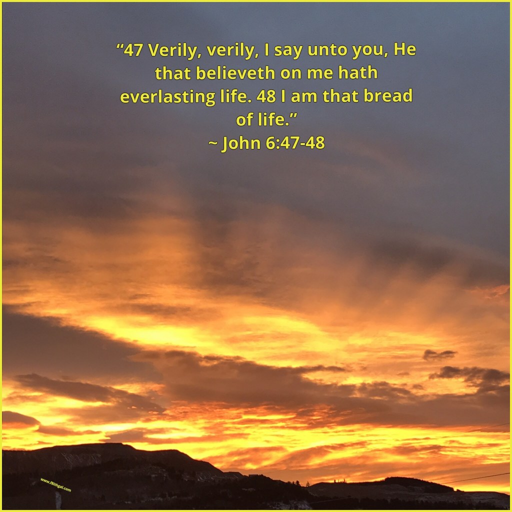 “47 Verily, verily, I say unto you, He that believeth on me hath everlasting life. 48 I am that bread of life.” ~ John 6:47-48
